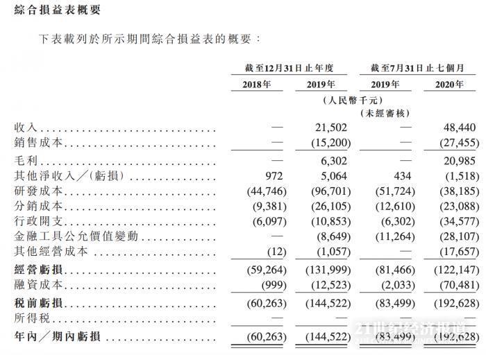 心通医疗目前仍未盈利,商业化时间较短。据其招股书,“仅在我们的第一代TAVI产品VitaFlow于2019年8月实现商业化后才开始产生收入。因此,自成立以来,我们每年产生净亏损。”截至2018年及2019年12月31日止年度以及截至2020年7月31日止七个月,净亏损总额分别为人民币6030万元、1.44亿元和1.92亿元。