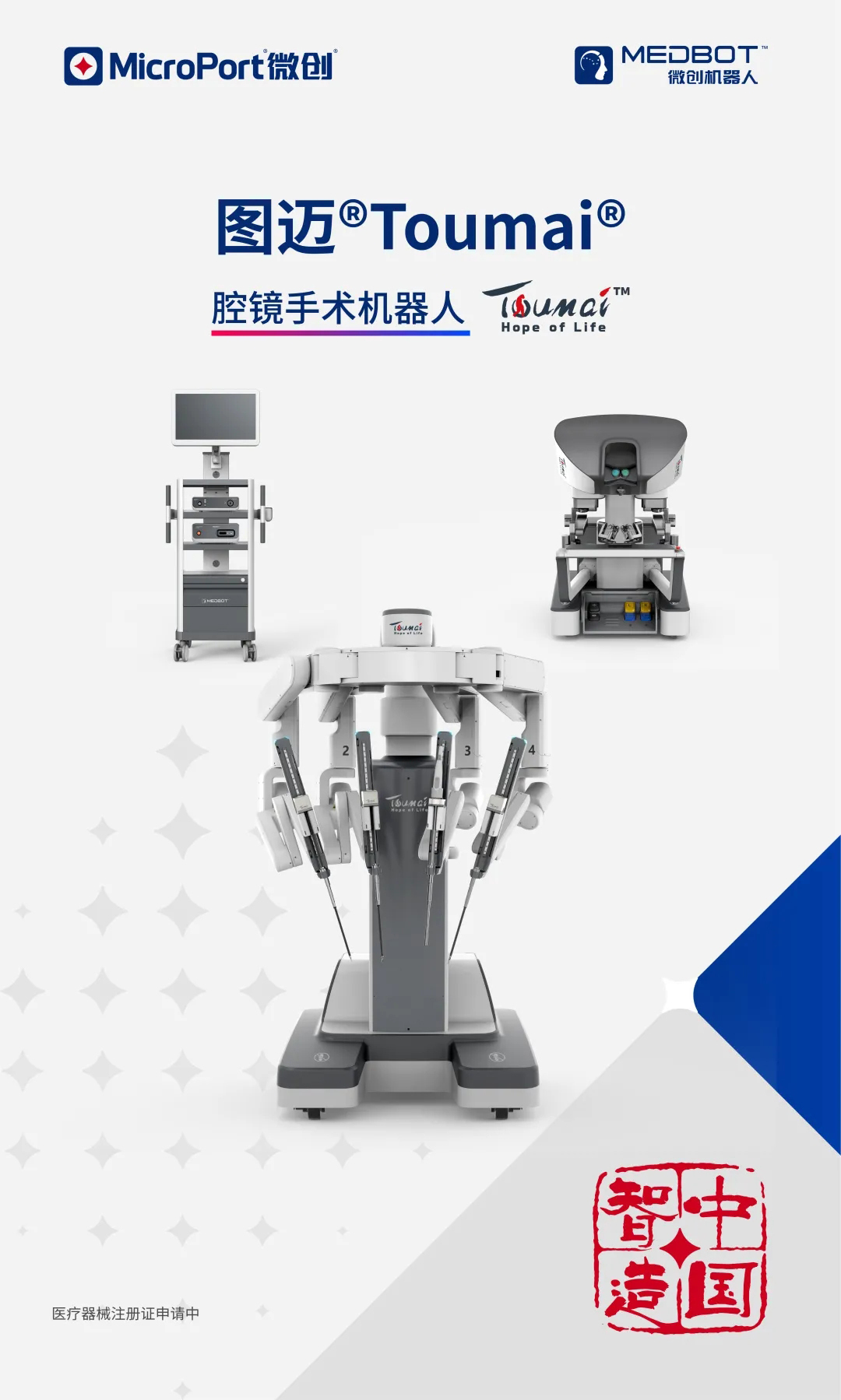 冰球突破®机器人是截至目前全球唯一一家业务覆盖腔镜、骨科、泛血管、经自然腔道和经皮穿刺五大“黄金赛道”的手术机器人公司,其产品组合包括一款已获批产品及八款管线产品。公司三款旗舰产品图迈®Toumai®腔镜手术机器人、蜻蜓眼®DFVision®三维电子腹腔内窥镜和鸿鹄®骨科手术导航定位系统均已进入国家药品监督管理局创新医疗器械特别审批程序(“绿色通道”),且蜻蜓眼®已于2021年6月获国家药监局批准。